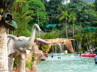 The other place that we visited was Bukit Merah lake town resort. The fastest route from Flemington will be the straight road via Jalan Kamunting Lama and thence the Plus Highway (12 o’clock at the Kamunting roundabout as you’re heading out of town. It’s the next exit after Taiping, heading North. The place opens at 10AM. It is advisable to visit the Orangutan sanctuary, Eco-park and all the other rides before you go to the water park. The Orangutan’s bear an uncanny resemblance to us humans, right to the finger nails. I didn’t know that the females menstruate when they come of age and unfortunately for these primates they’re not spared from getting most of man’s dreaded disease i.e. heart complications, diabetes, kidney etc. As usual, outside food is not allowed but you can carry all these food stuffs and eat them along the way. The only place where it’s fully restricted is at the water park. They will safely store your eateries when you enter the site and return it upon your exit. If you’re going there, please remember to rent a 2 seater float at the entrance, it will safe you the long journey back from the pool area as you need them for some of the rides. A lot of souvenir’s can be purchased at the food stalls here...ladies accessories & fridge magnets are in abundance.
